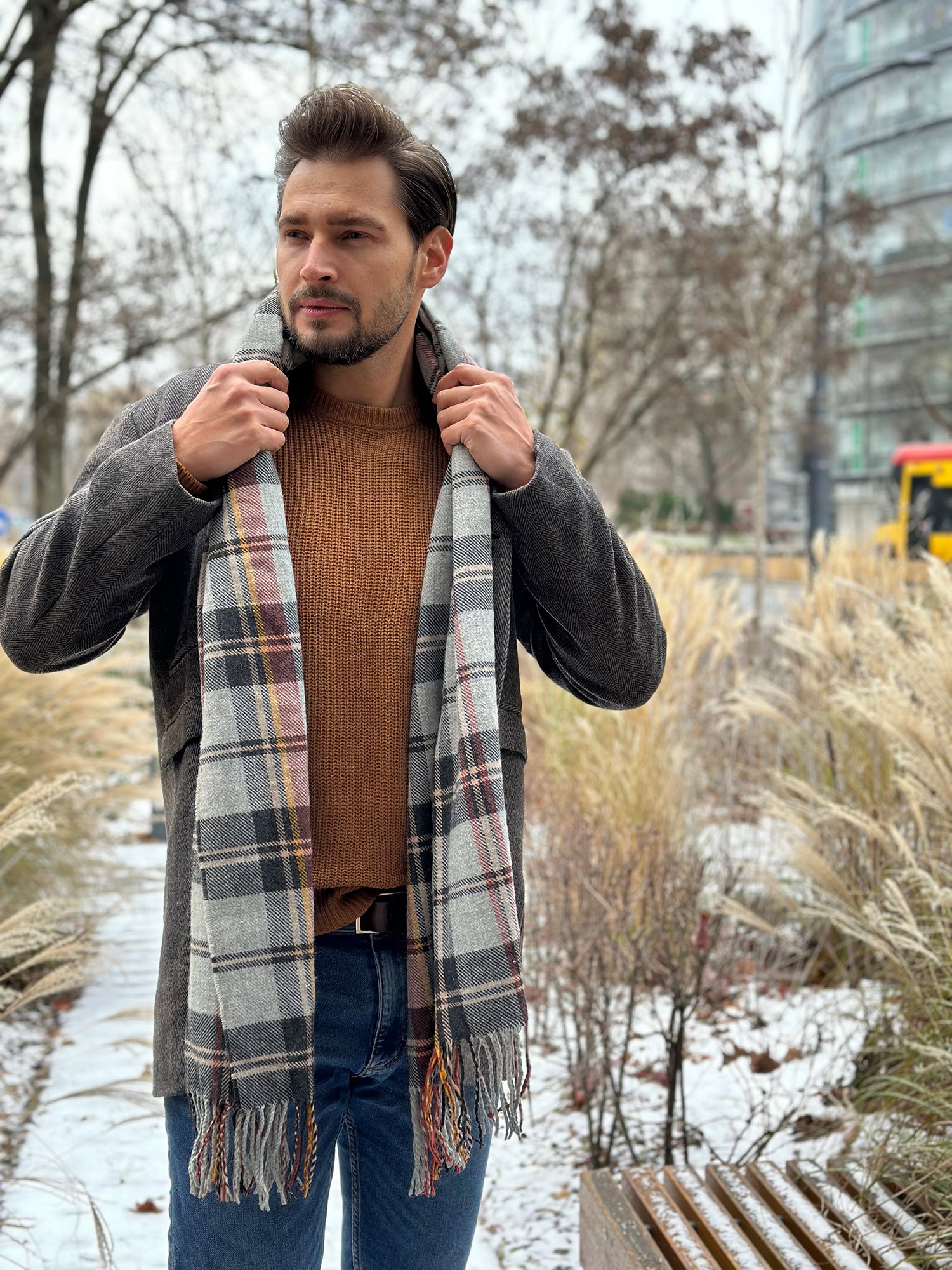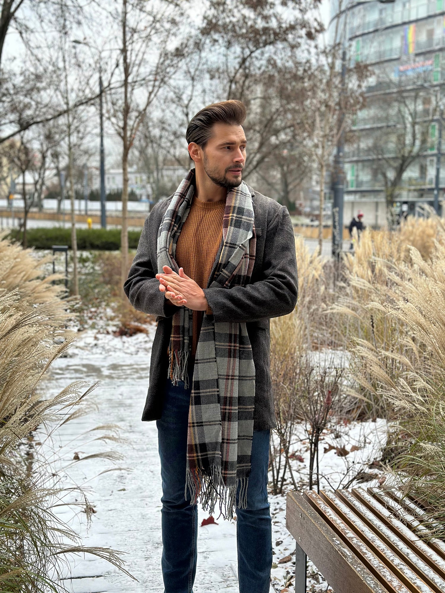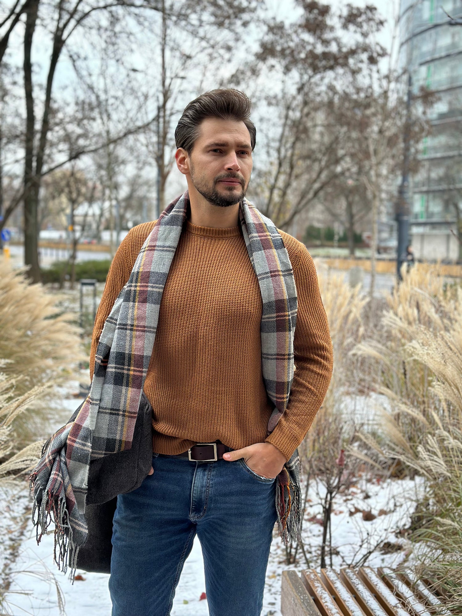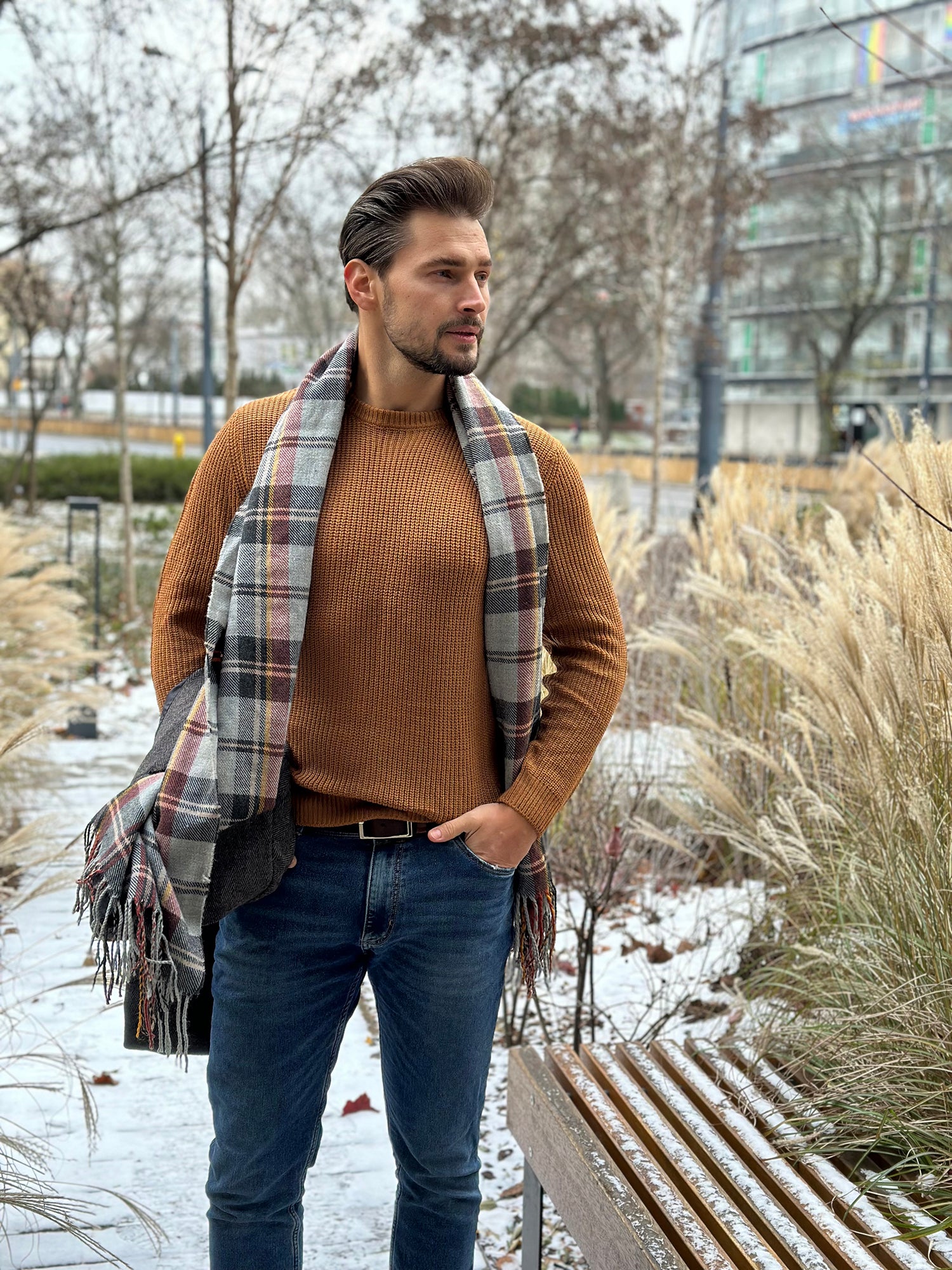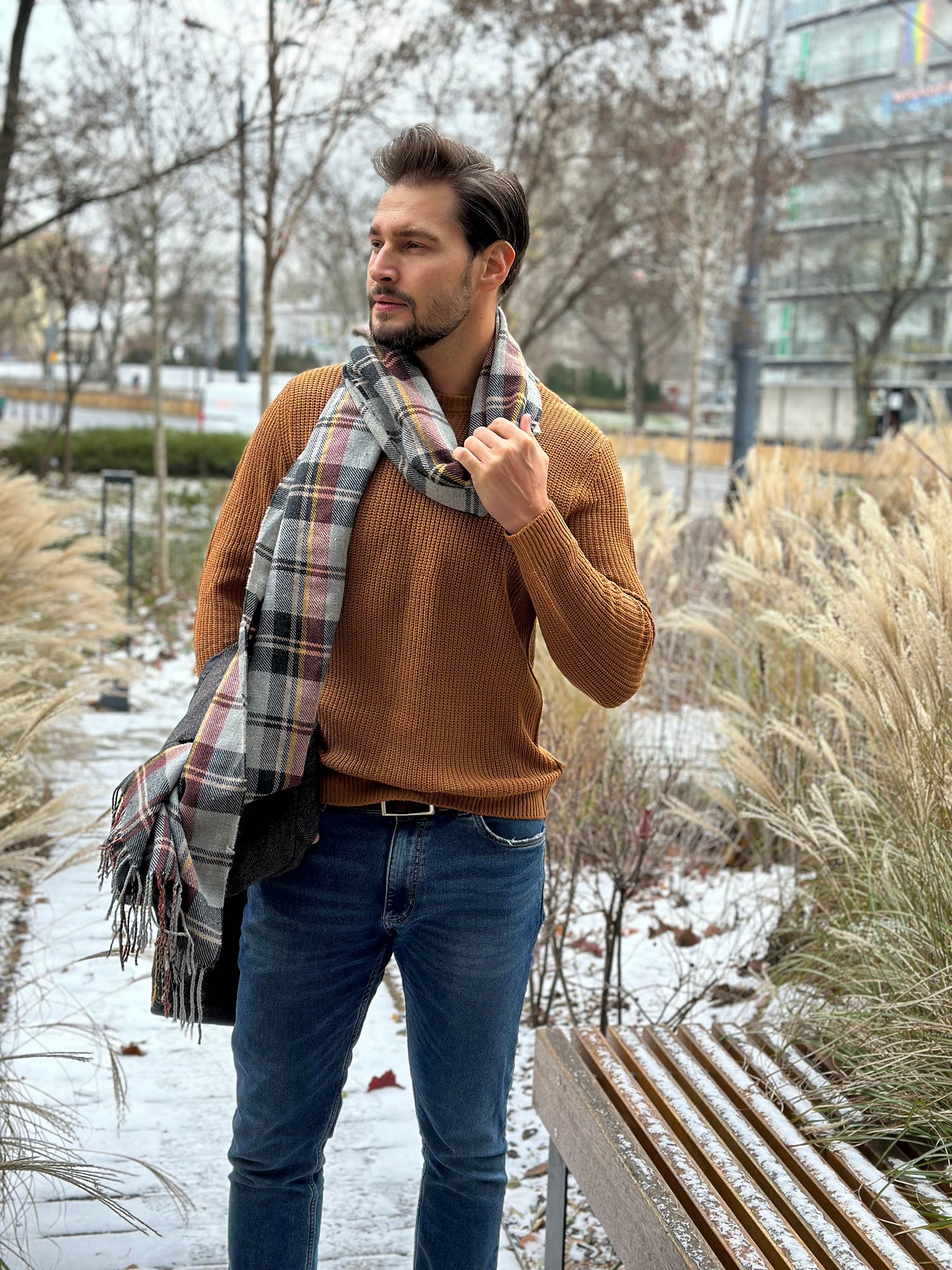 Rocking my favorite blue jeans paired with a stylish striped shirt for that effortless vibe. Both from Coofandy.