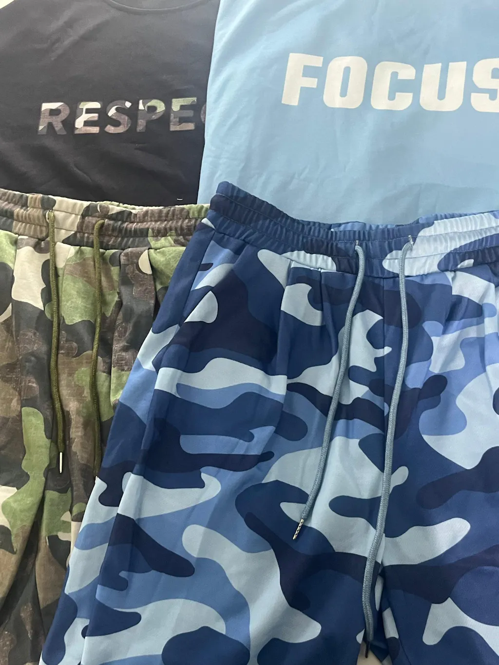- Design: Camo print design, ribbed reinforced neckline, raw edge neckline and hem