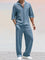 Casual Water Ripple Textured Shirt Set Sets coofandy Blue M