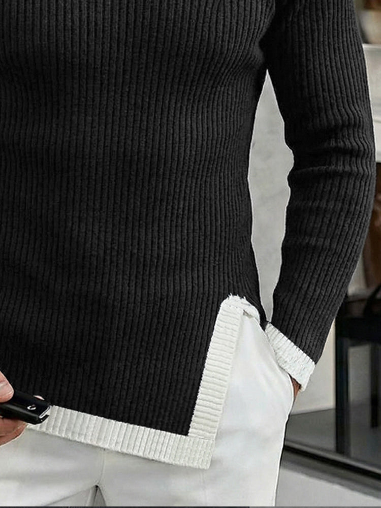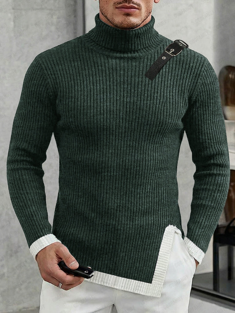 Stylish Leather Buckle Turtleneck Sweater