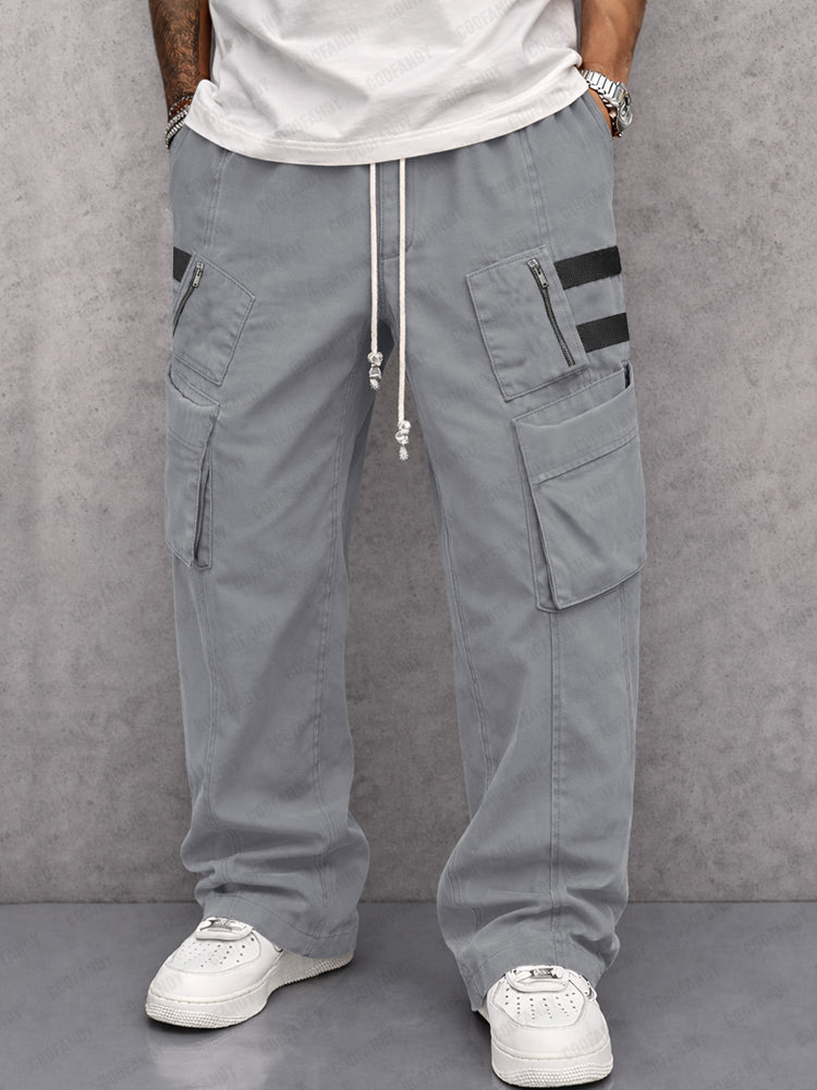 • Design: Elastic waist with adjustable drawstring, contrast strap, multi pockets design, 2 cargo pockets, 2 slant pockets, 2 zip pockets.