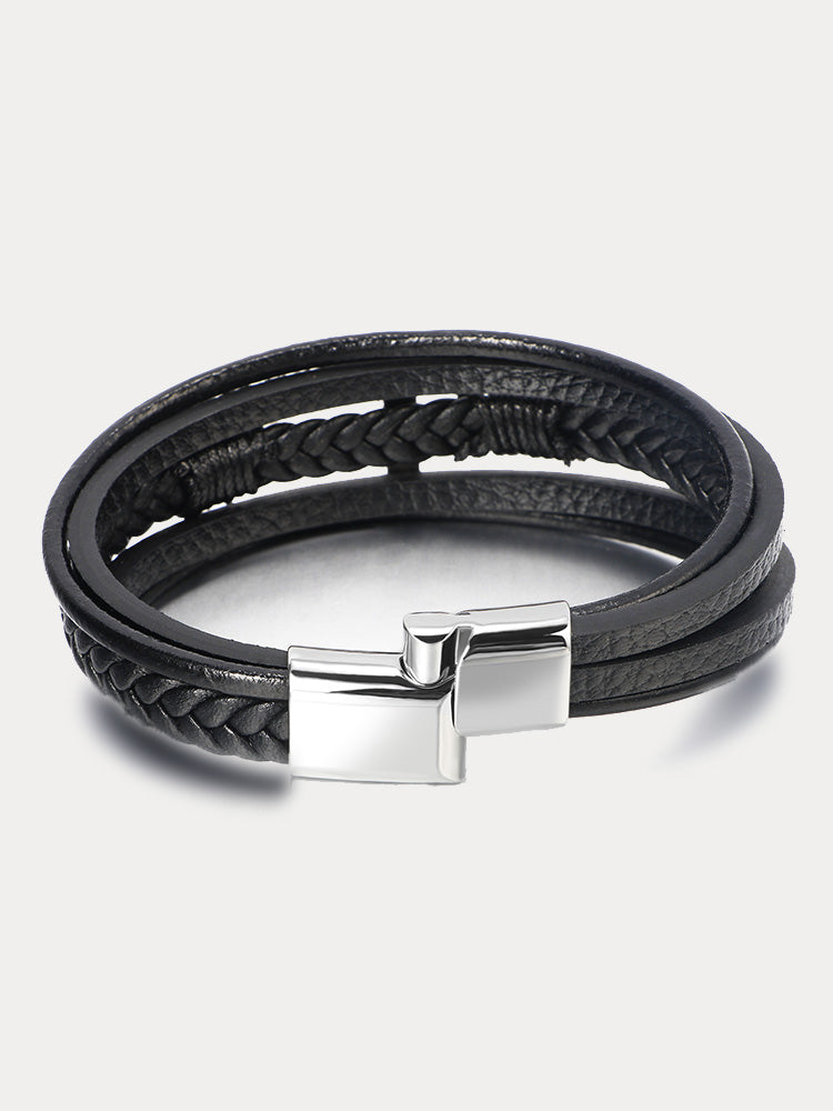 • Material Quality: The bracelet is made of stainless steel and leather, which is durable and comfortable to wear. It is unique in that it has multiple layers of braiding and cross elements.