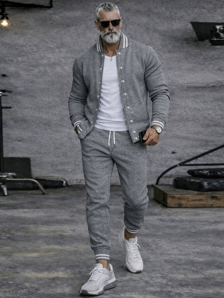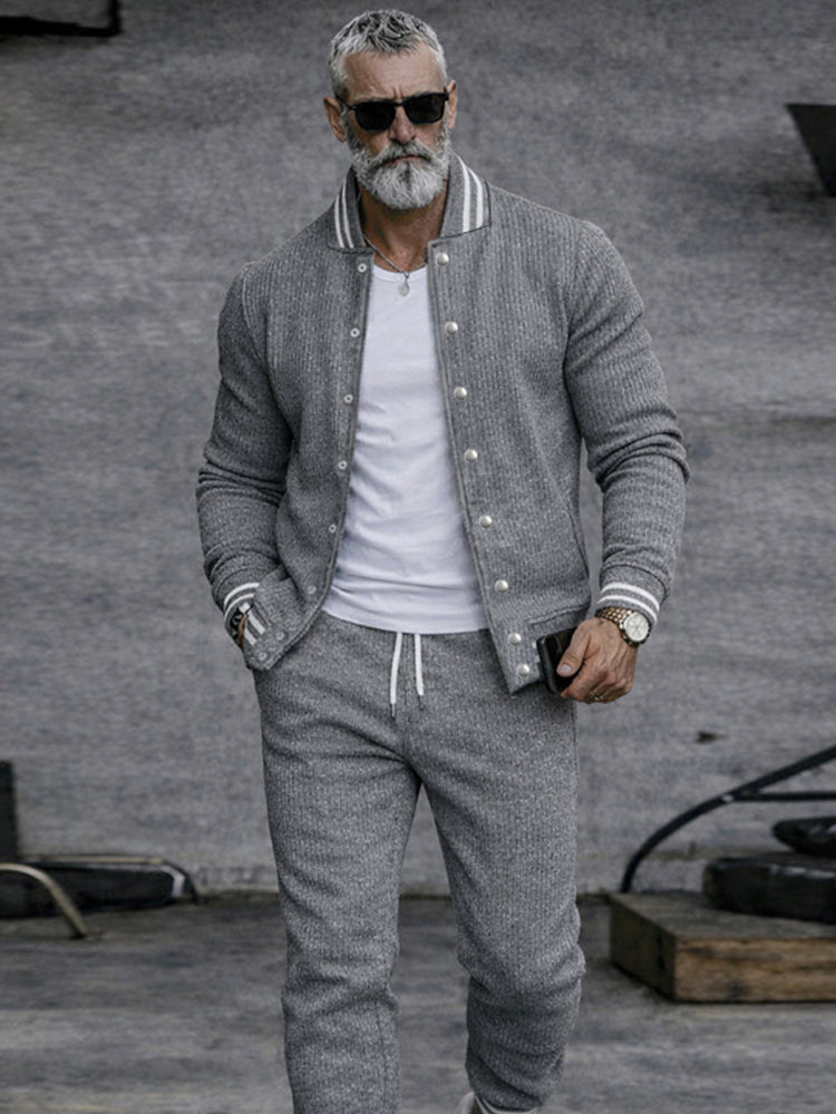 - Jacket: Button closure, ribbed collar, cuffs and hem, 2 slant pockets, shoulder pads and lining included.