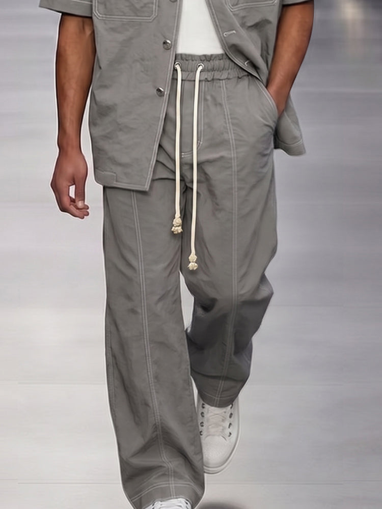 Casual Cuban Collar Utility Shirt Pants Set