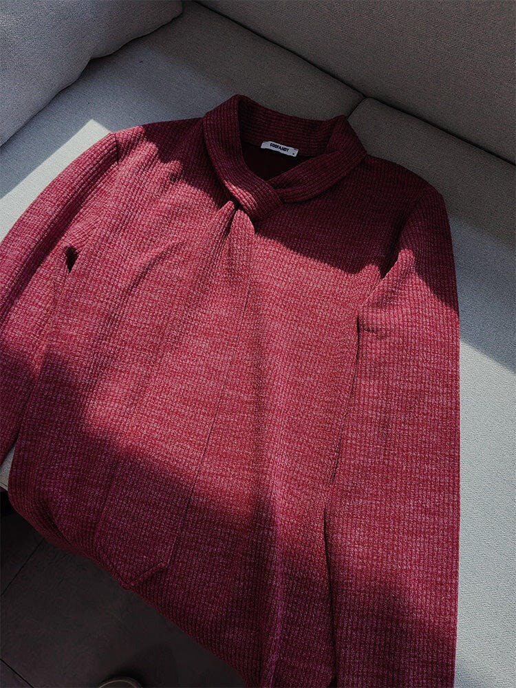 - Design: Elastic knit fabric, unique tie-decoration collar