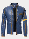 Stand Collar Punk Leather Jacket Jackets coofandystore Blue S