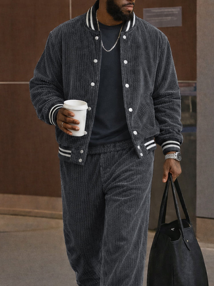Corduroy Contrast Stripe Trim Jacket and Pants Set
