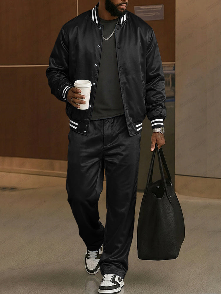 - Jacket: Button closure, contrast ribbed collar, cuffs and hem, 2 slant pockets