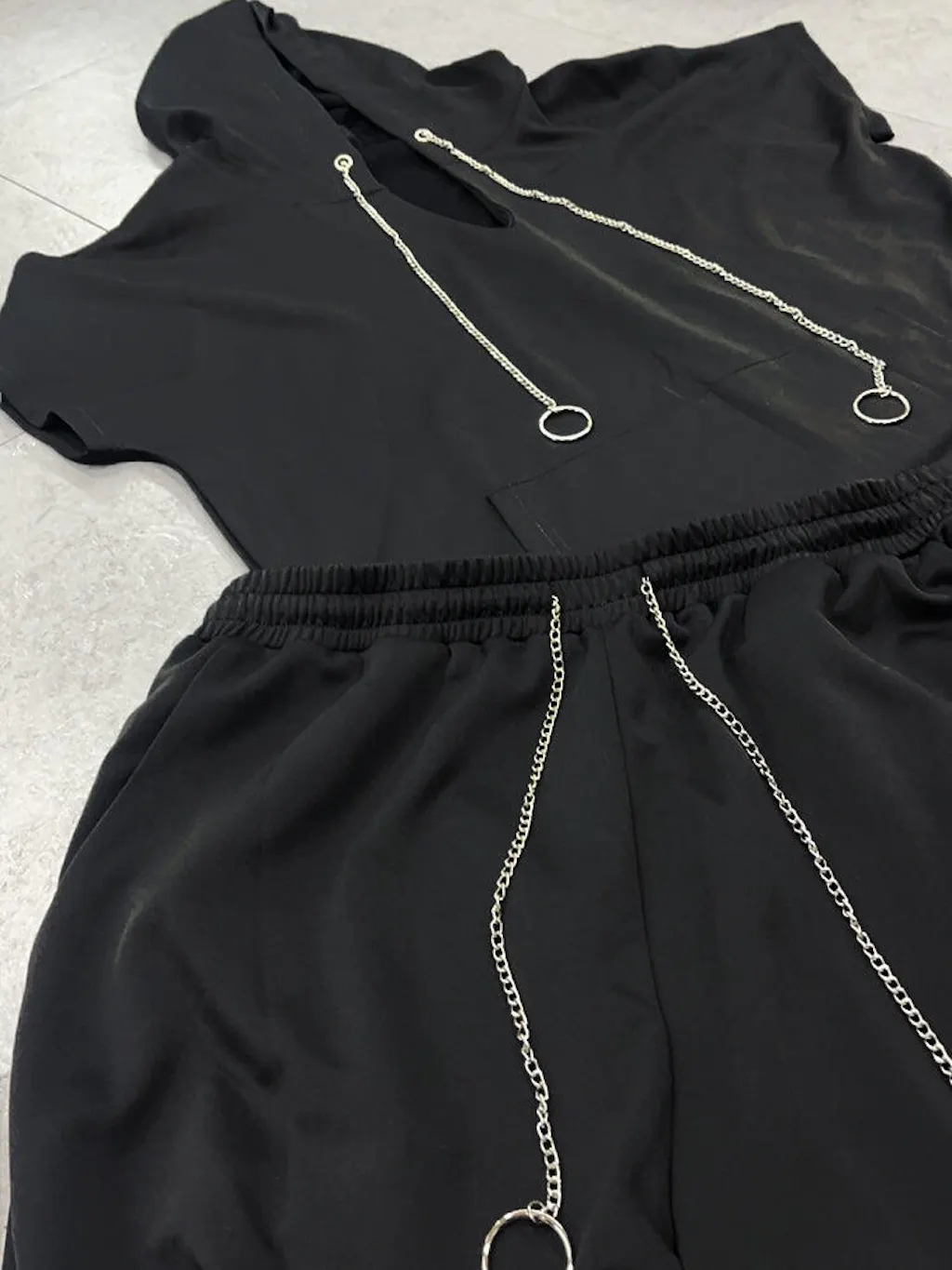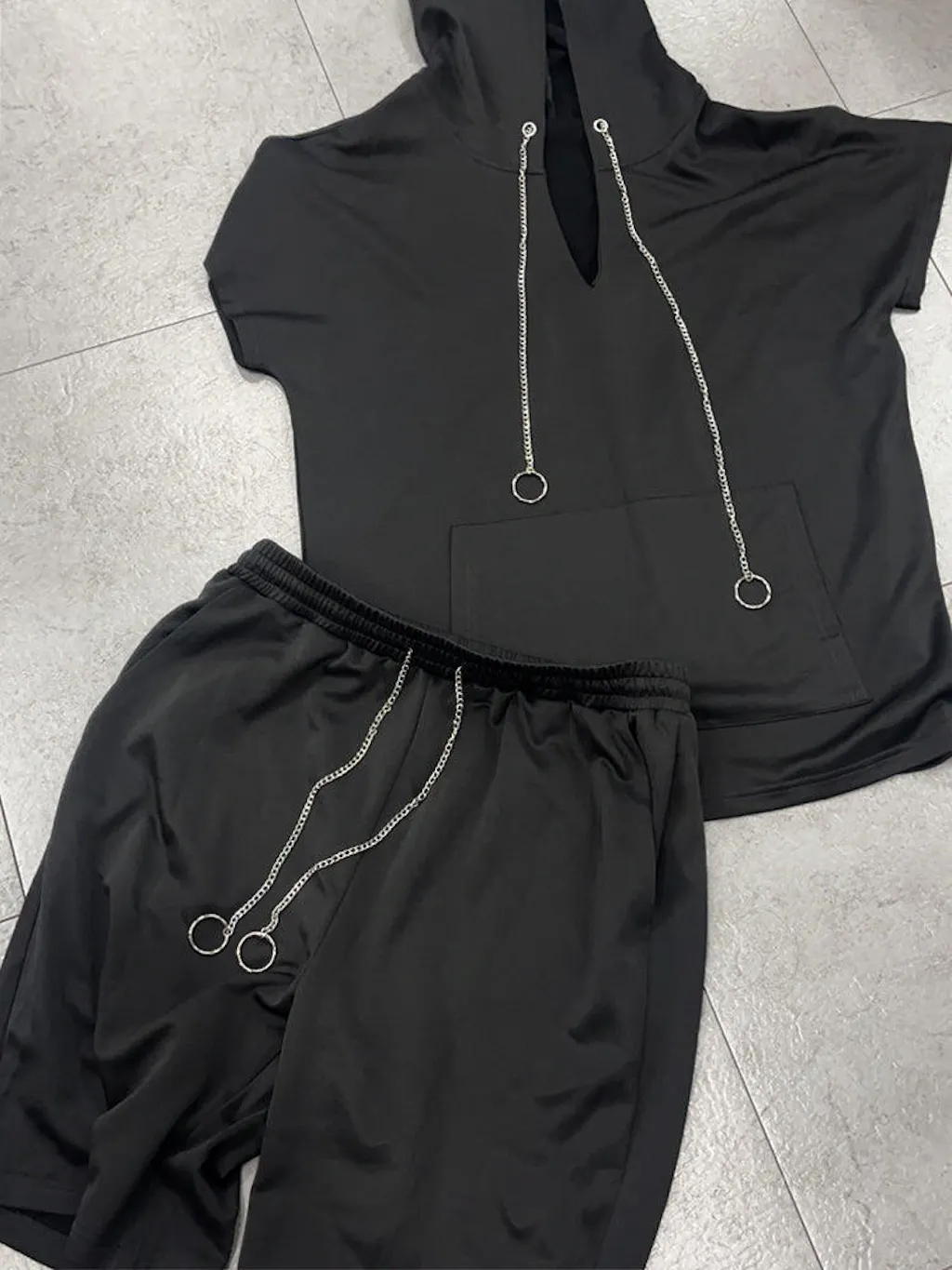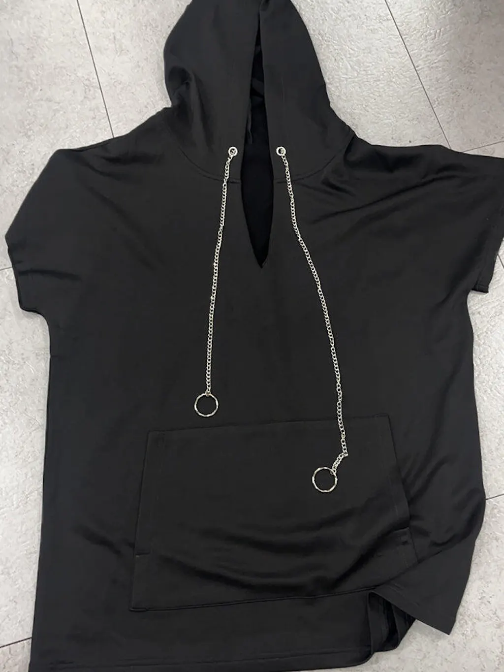 - Top: Hooded with chain design, v-neck, kangaroo pocket
