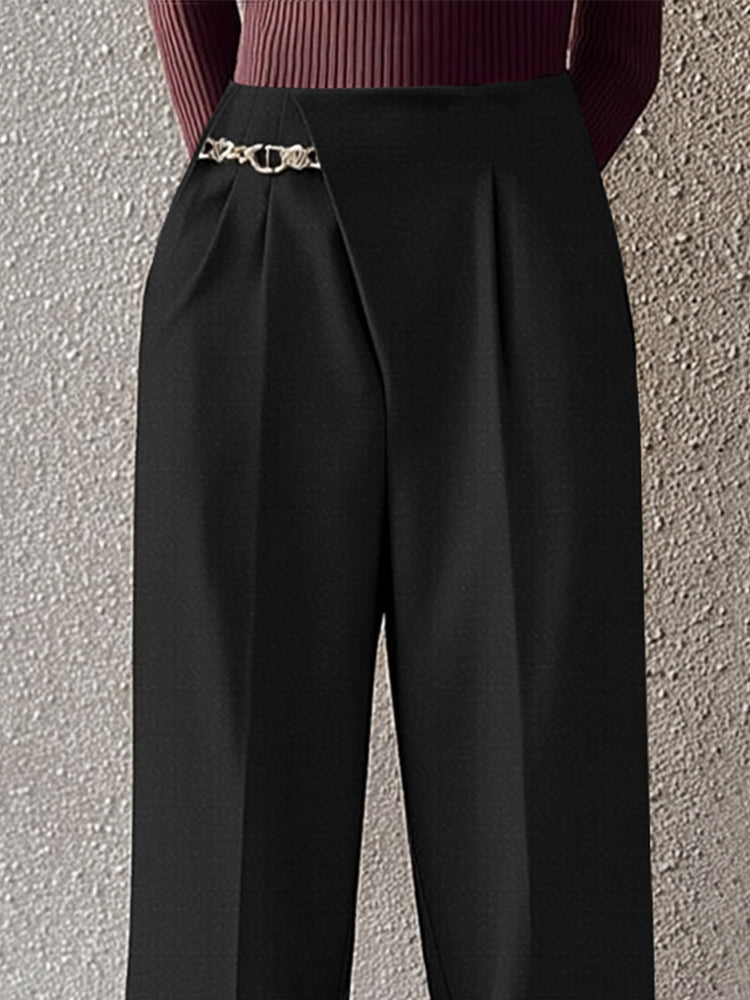 Asymmetric Placket Belt Accent Pants
