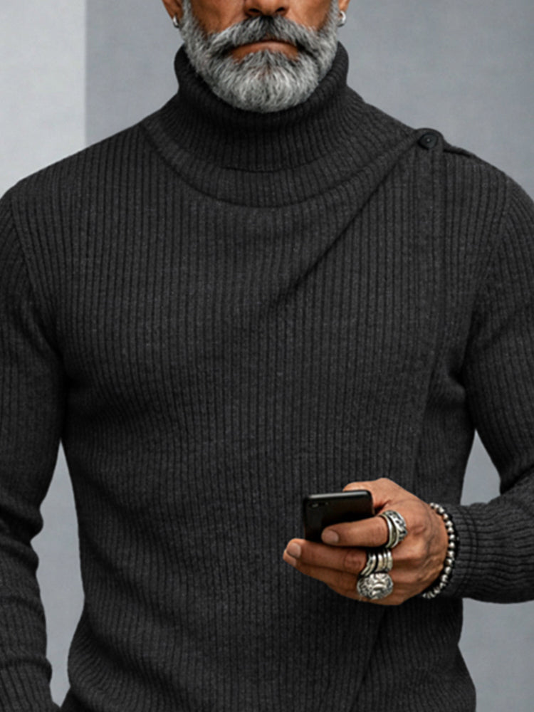 • Design: Elastic knit fabric, turtleneck, button decoration