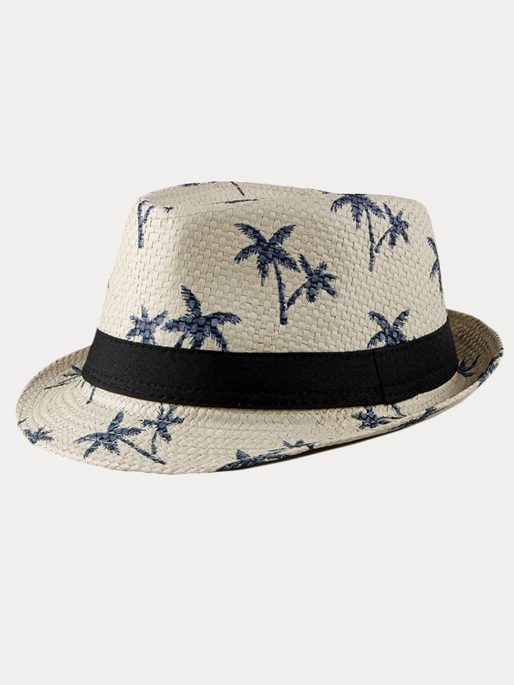 Vacation Coconut Tree Print Woven Straw Fedora Hat
