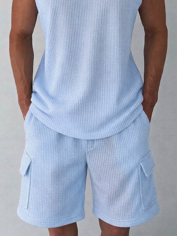 Athleisure Waffle Knit Tank Top Shorts Set
