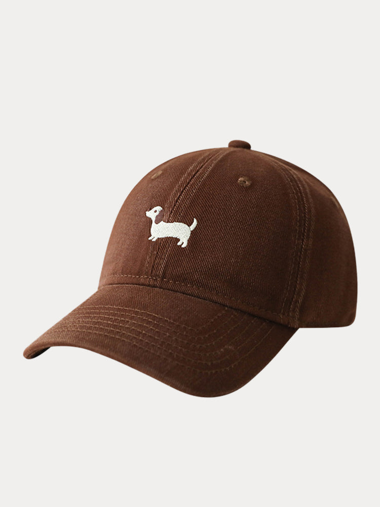 Casual Embroidered Sausage Dog Cotton Baseball Cap