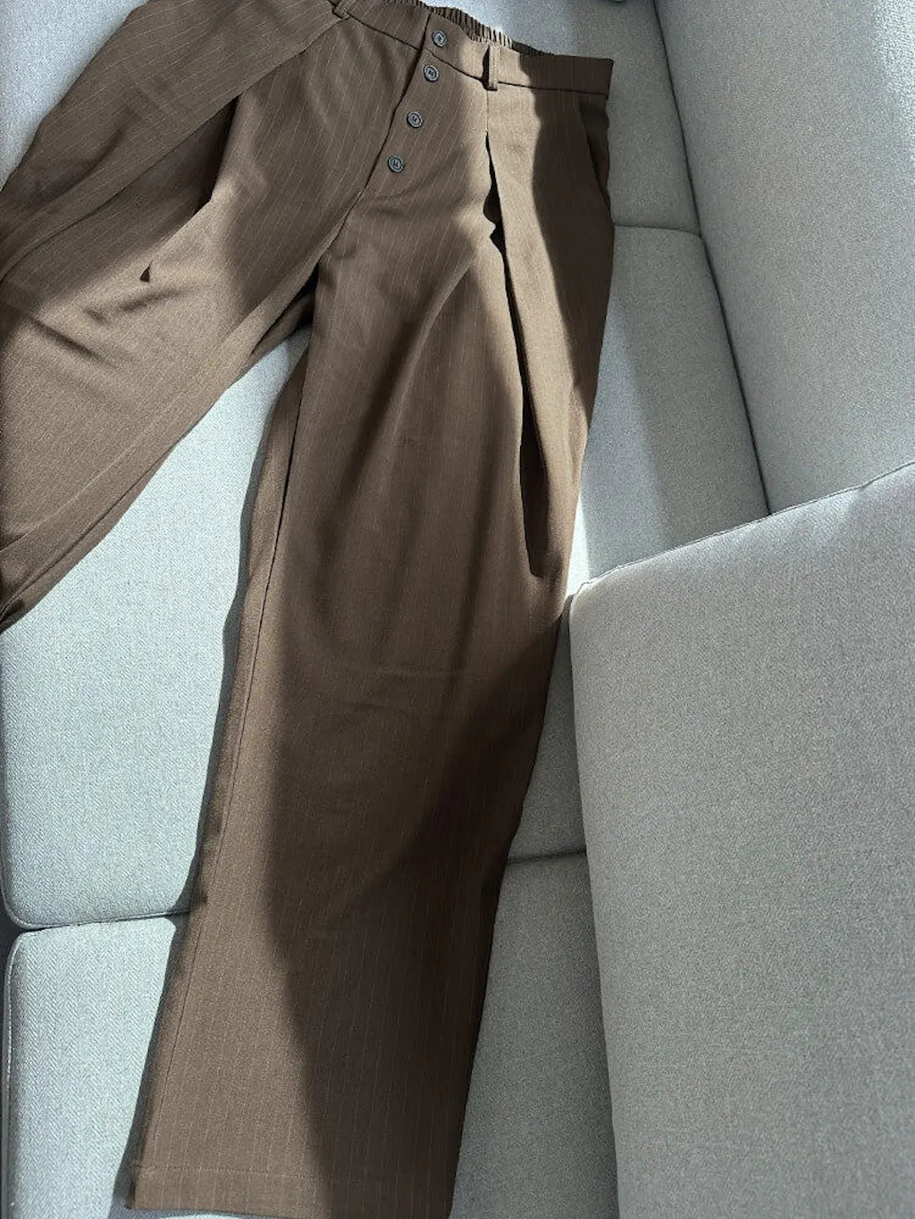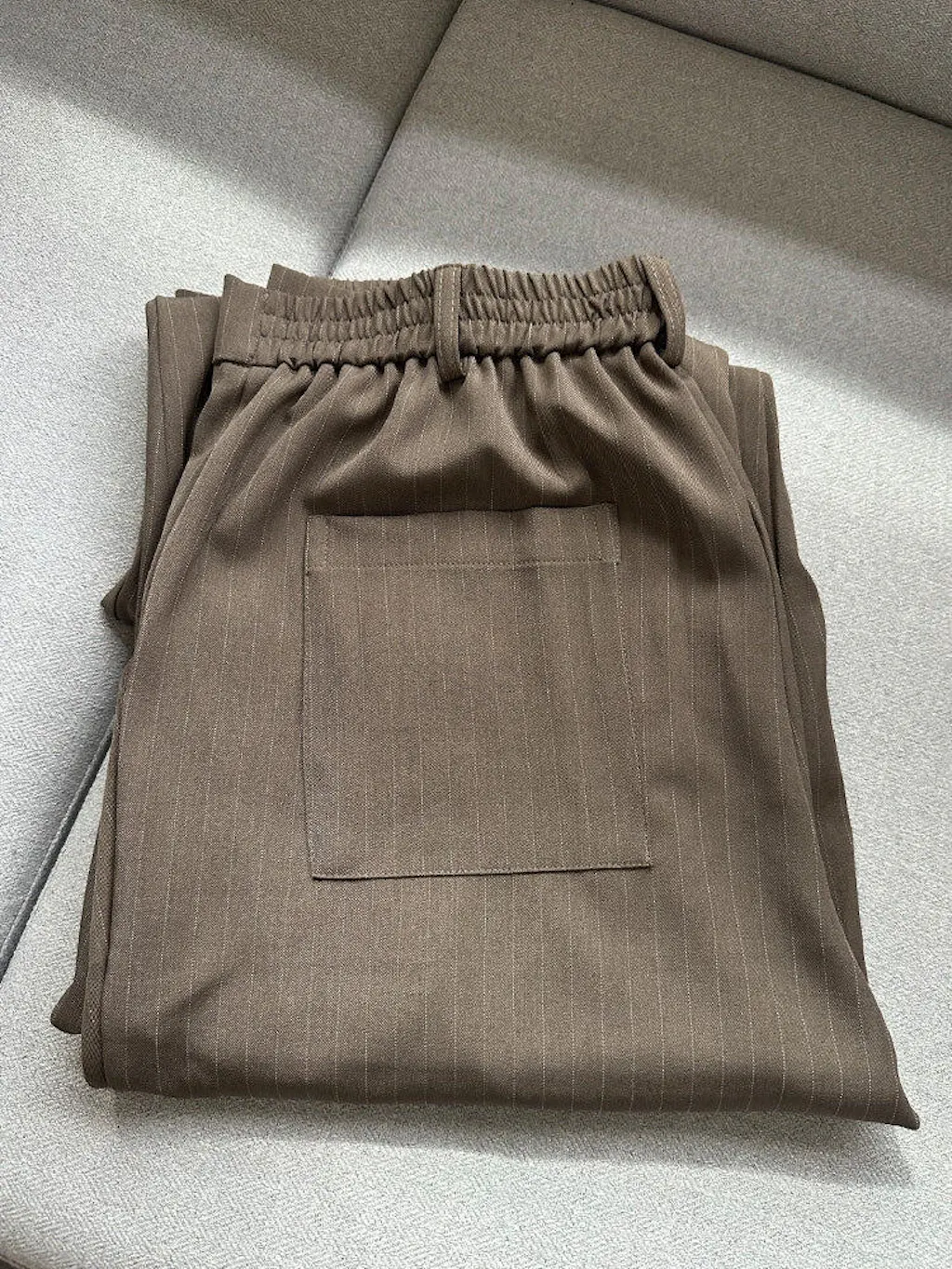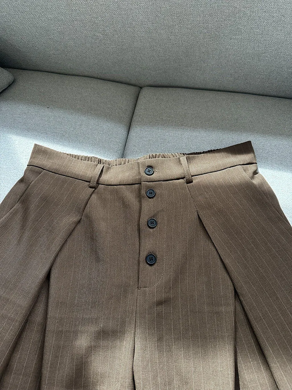 - Design: Wide legs, stripe pattern, pleated design, back elastic waistband, 2 slant pockets, 2 flap pockets, 2 back pockets
