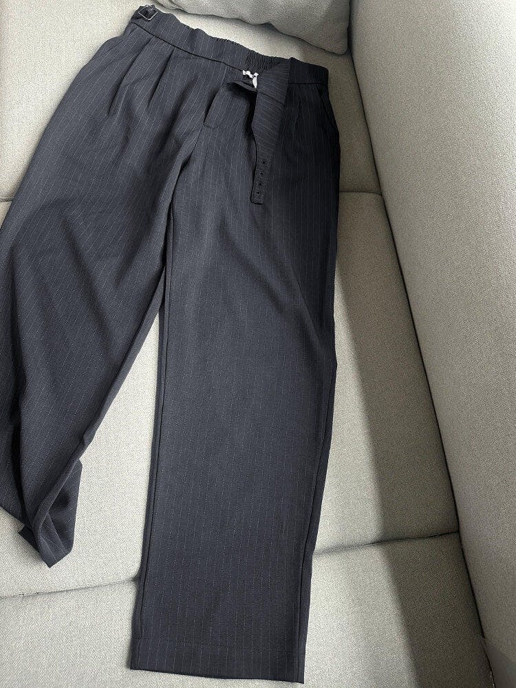 - Design: Straight legs, stripe pattern, pleated design, back elastic waist, 2 side pockets, 2 back pockets