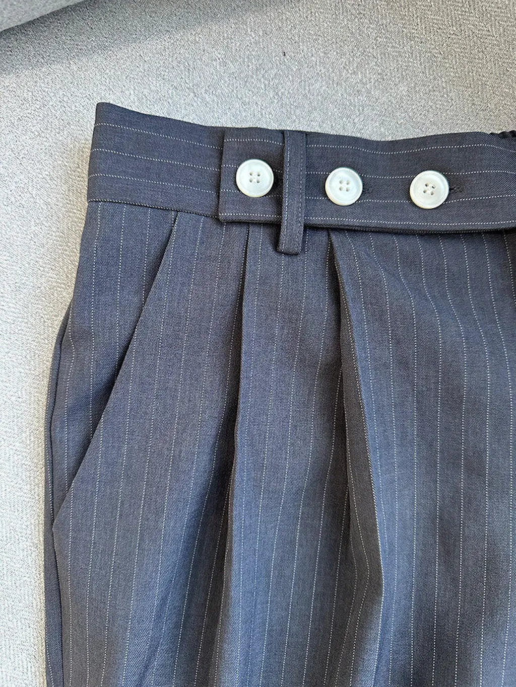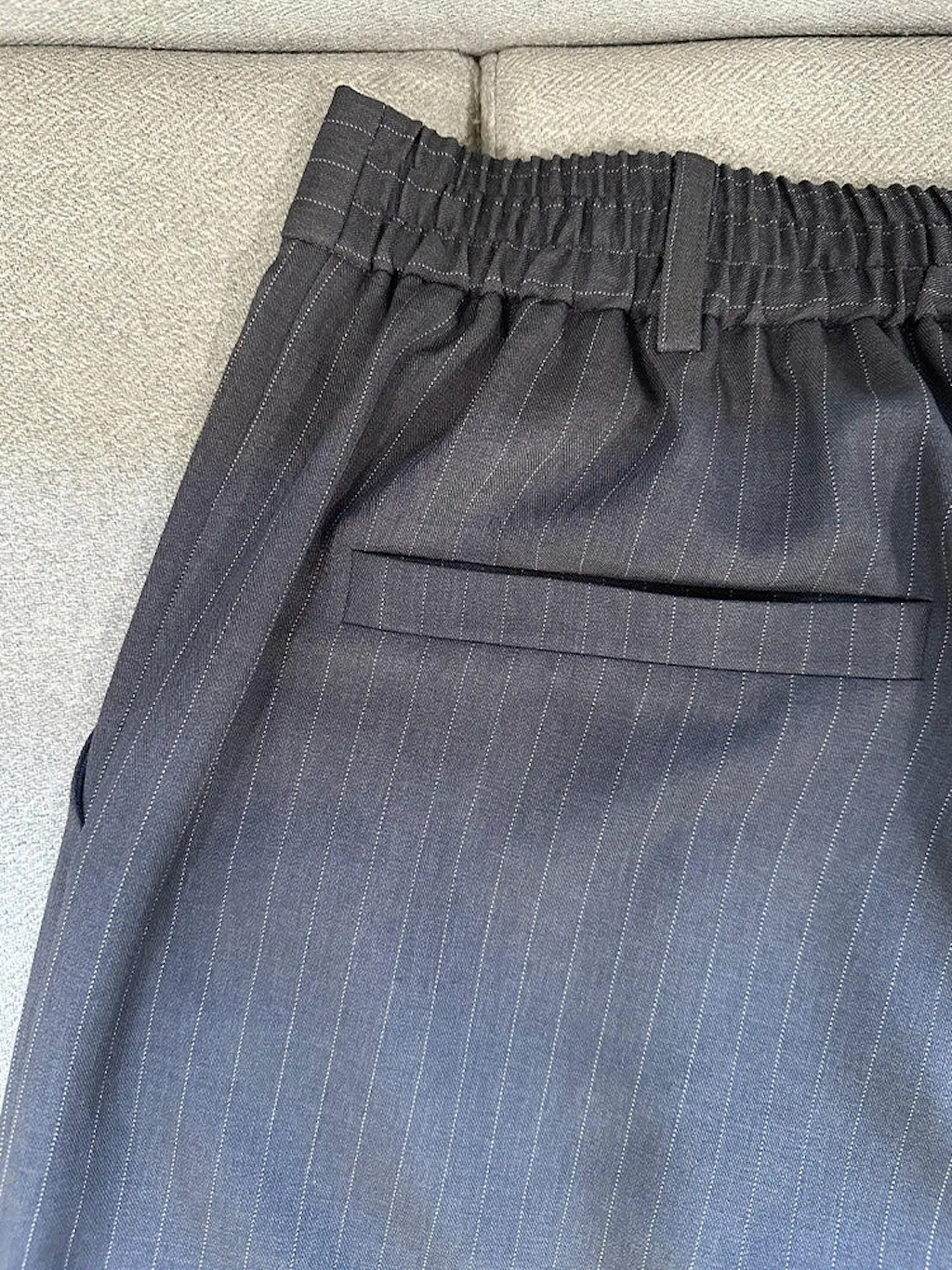 - Design: Wide legs, pleated design, stripe pattern, back elastic waistband, 2 slant pockets, 2 back pocket