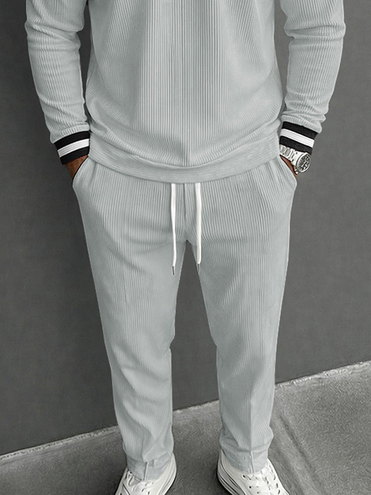 - Top: Contrast color ribbed stripe collar and cuffs, quarter zip up placket