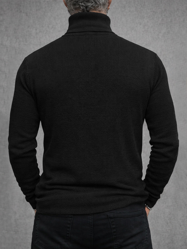 Stylish Leather Patchwork Turtleneck Top