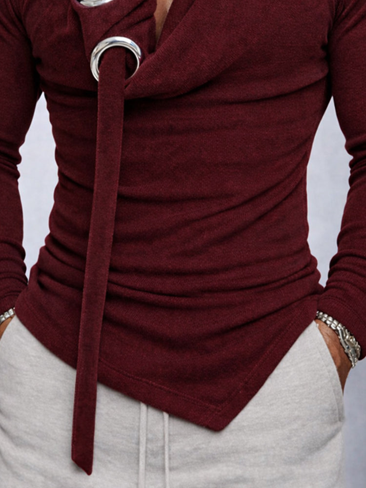 Stylish Slim Fit Eyelet Cowl Neck T-Shirt