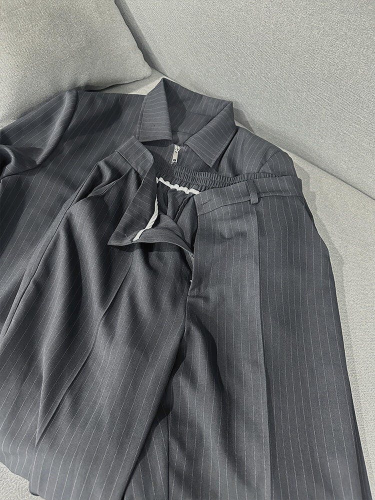 - Top: Lapel collar, zip closure, 2 side pockets, one fake chest pocket, shoulder pads and lining included