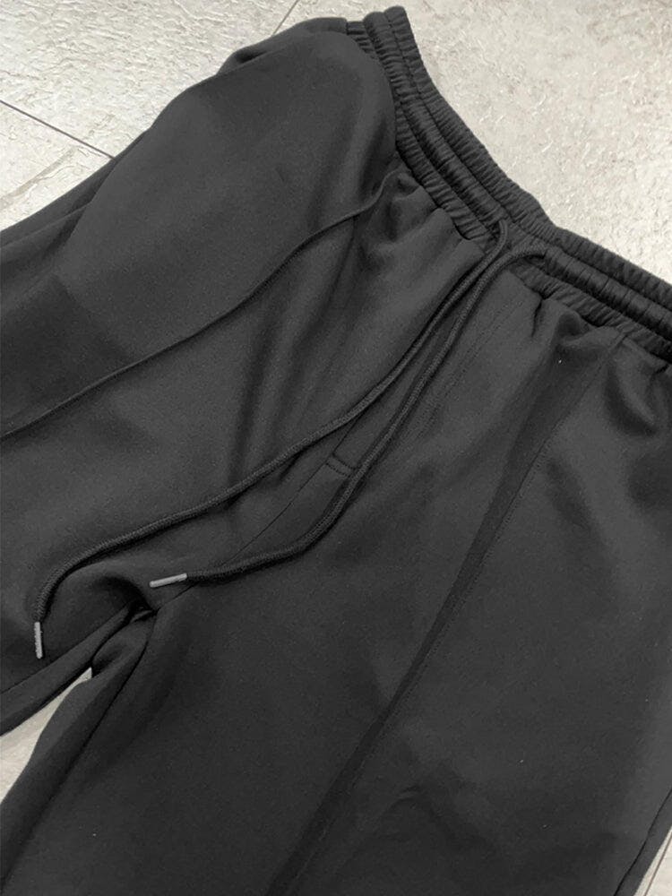 • Bottom: Straight leg, crease-front, elastic waistband with adjustable drawstring, 2 side pockets
