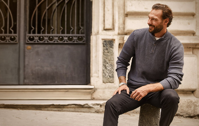 Coofandy’s cardigan is the slim-fit option of the bunch, designed with a crew neckline that buttons all the way up, giving it a cleaner, more polished look than a traditional V-neck. The twisted cable-knit pattern runs across the body and sleeves, adding texture without feeling bulky. It also has two front pockets that are practical without throwing off the silhouette. The polyester blend with added stretch felt thick and warm but never suffocating, even when worn fully buttoned.
