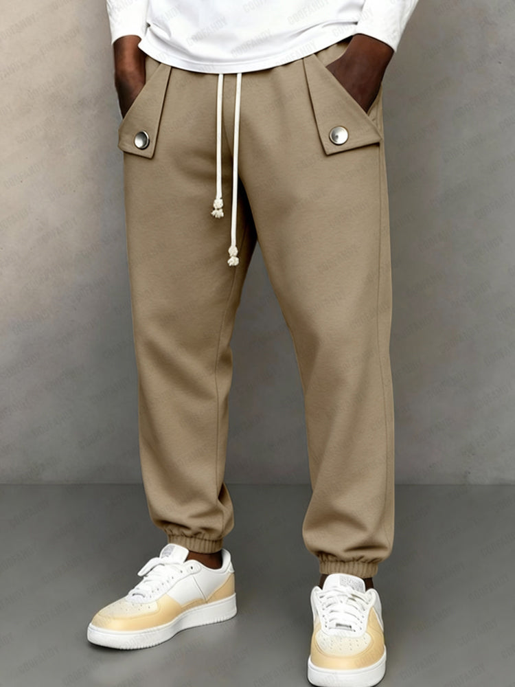 - Design: Elastic waistband with adjustable drawstring, button accent, elastic hem, 2 slant pockets, one back pocket
