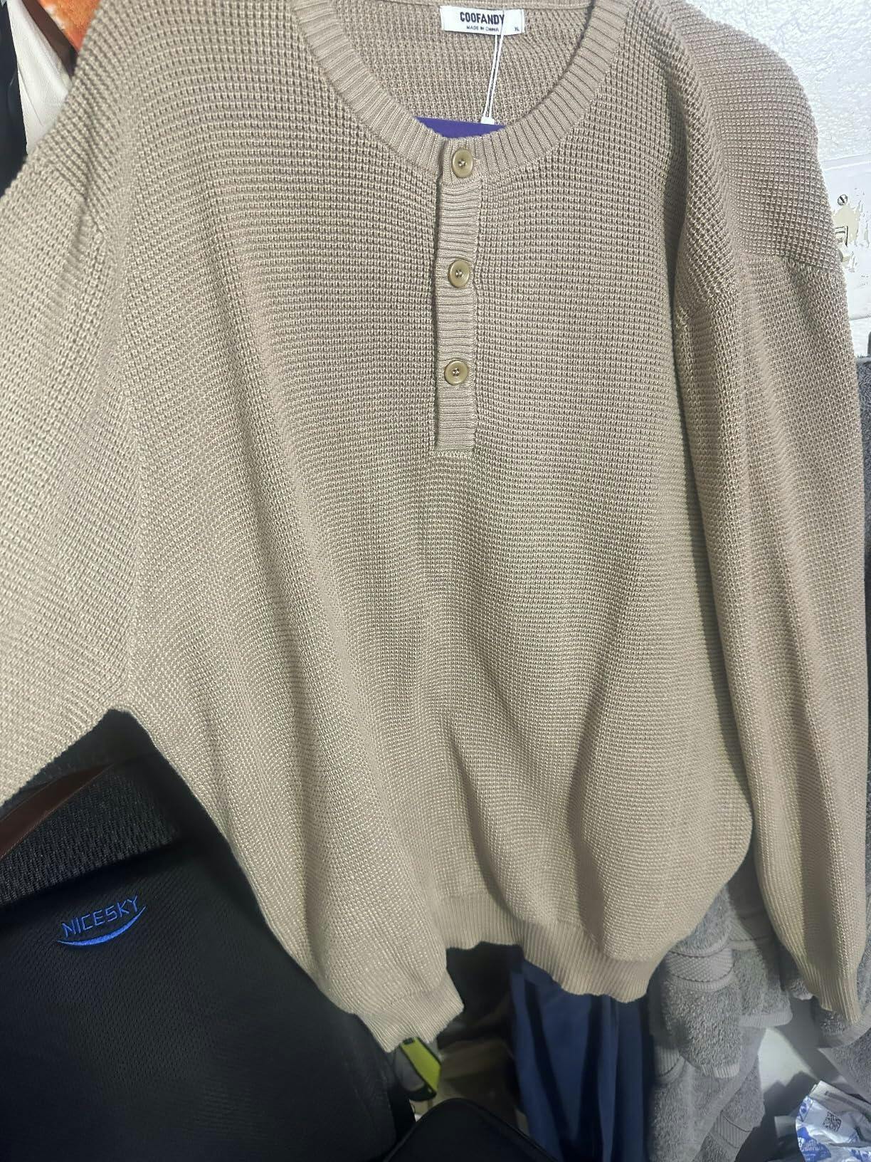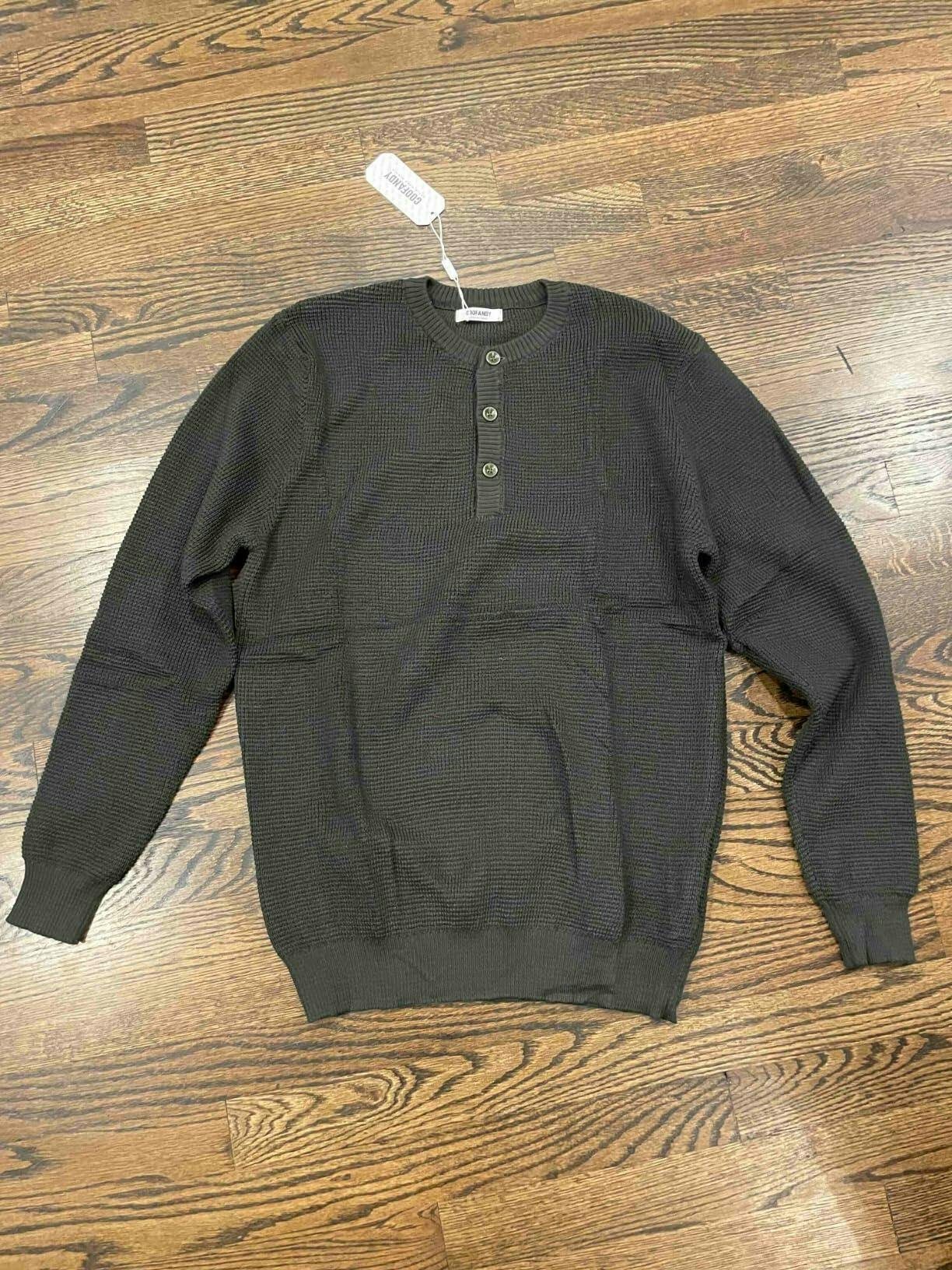 - Details: Classic henley neckline, 3 button, long sleeves, solid color, waffle textured, ribbed knitted cuff & hem