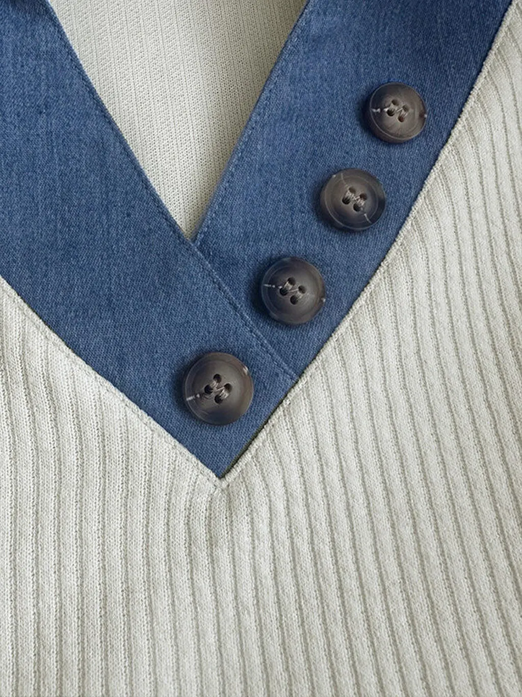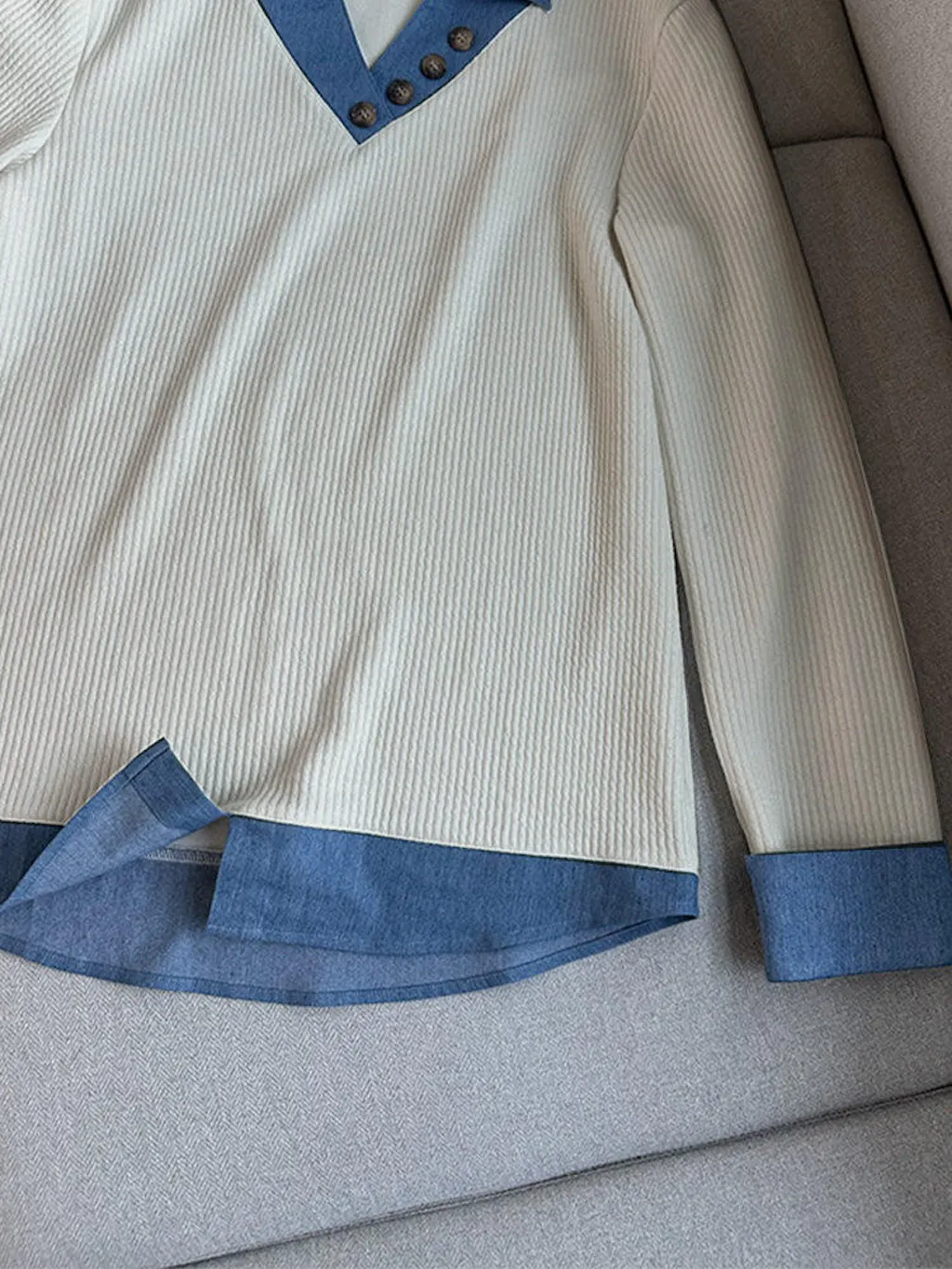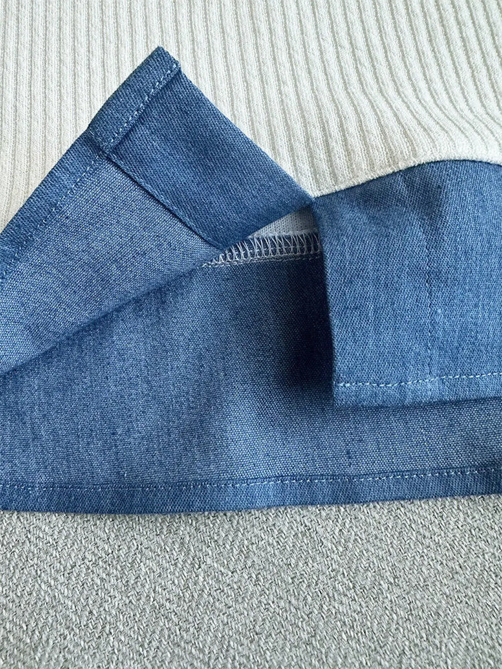 Stylish Denim Patchwork Fake Two-Piece Knit Shirt