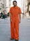 Trendy 100% Cotton Workwear Jumpsuit Jumpsuit coofandy Orange M