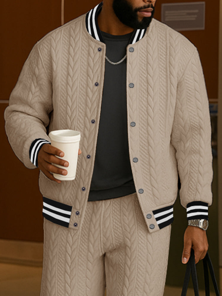 Casual Jacquard Textured Jacket Pants Set
