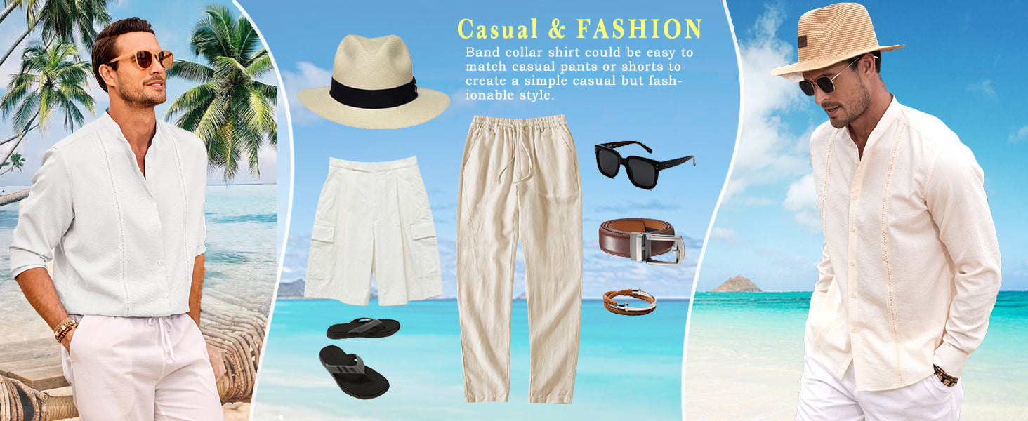 • Clothing Match: Men's linen shirt could be easy to match with line shorts/pants, casual pants or shorts to create a simple but fashionable style. These casual shirts are great either solo buttoned up or worn unbuttoned over a form fitting t-shirt/tank.
