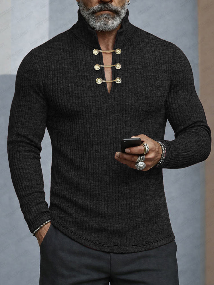 Stylish Button Design Turtleneck Knit Top