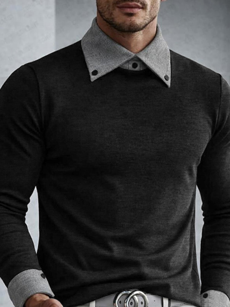 Stylish Fake Two-Piece Contrast Color Top