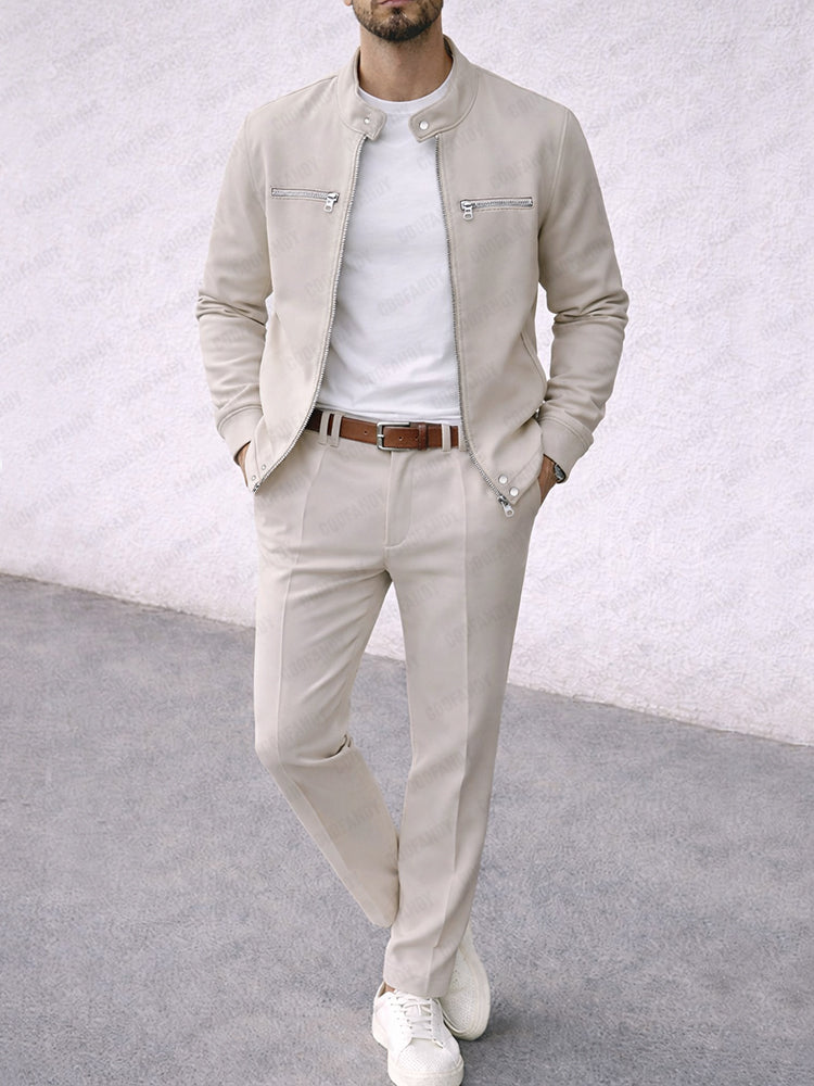 - Bottom: Zip closure with button end, back elastic waistband, 2 slant pockets, 2 back pockets