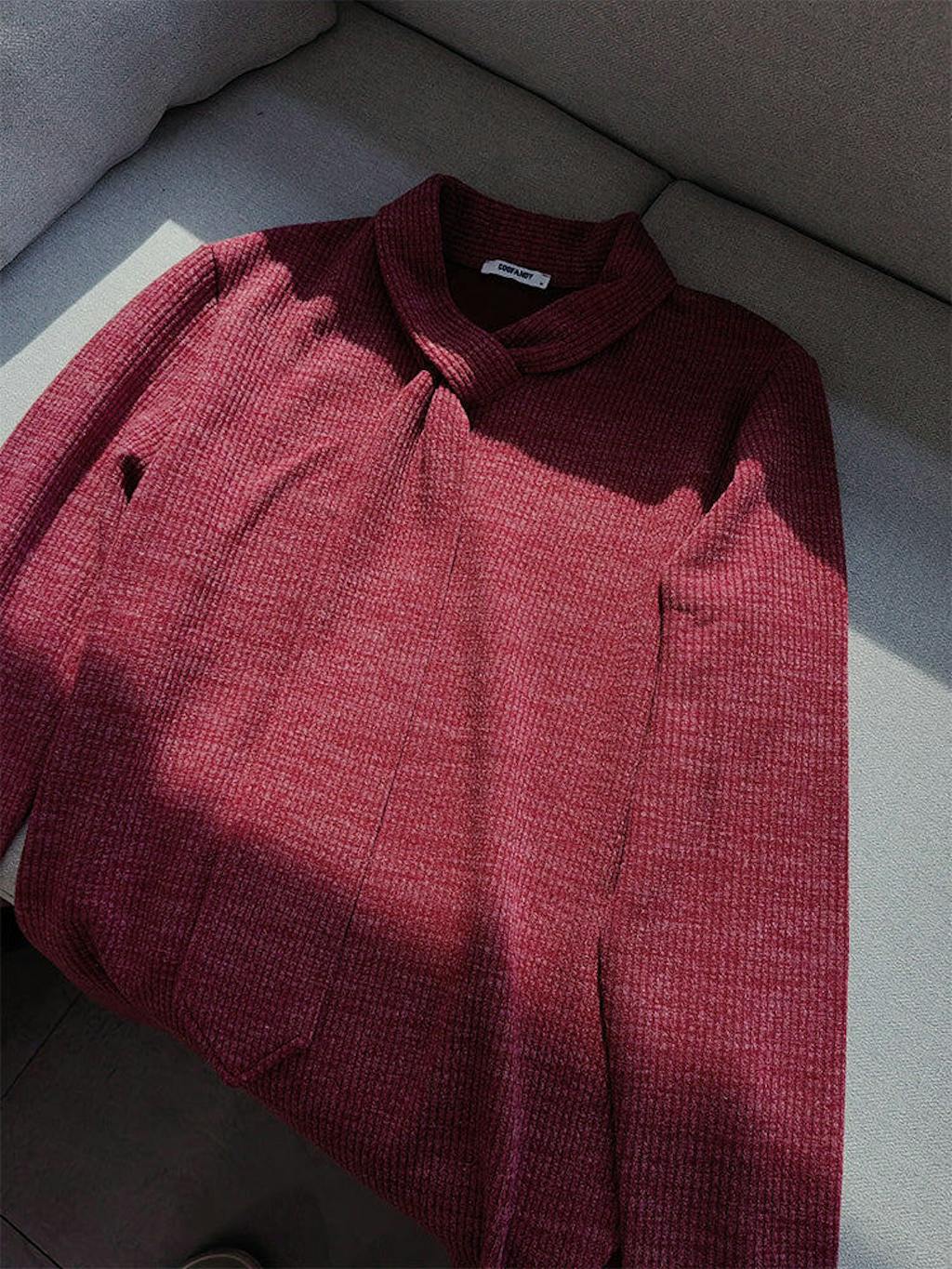 • Design: Elastic knit fabric, unique tie-decoration collar