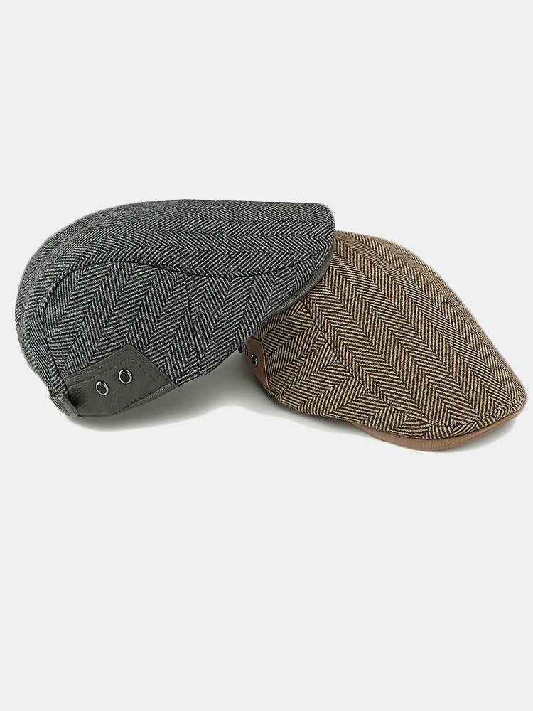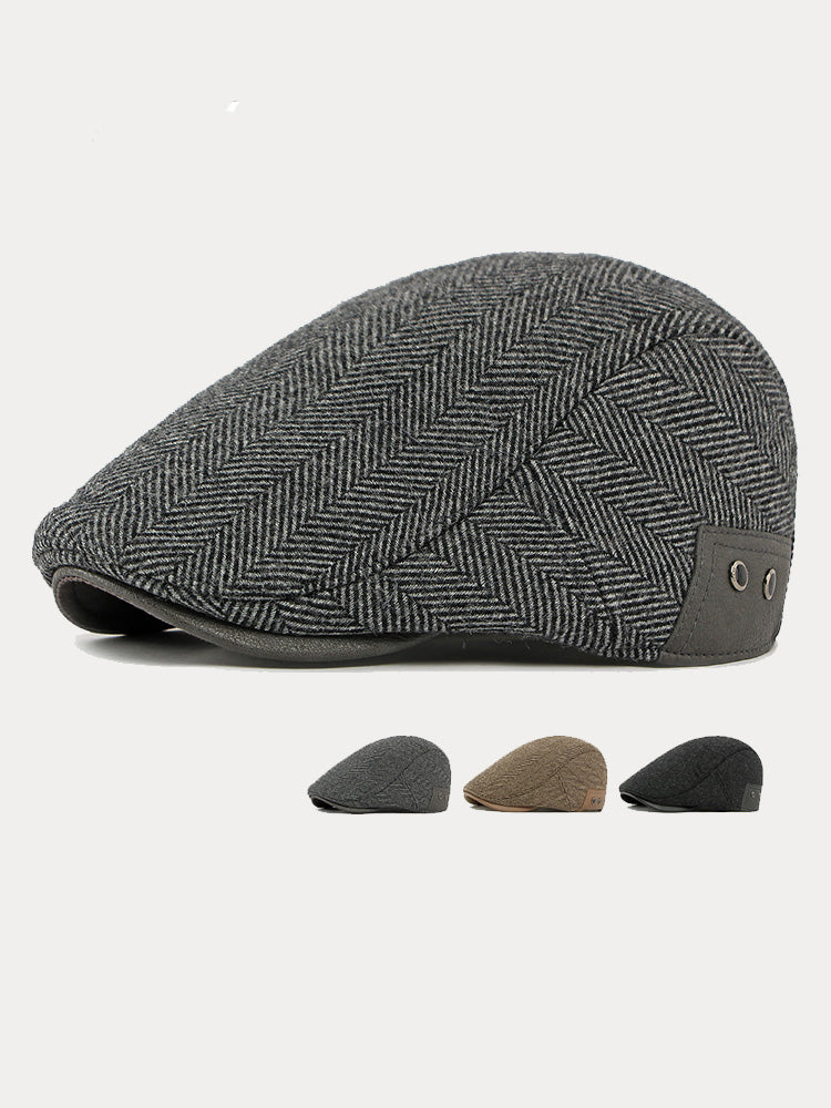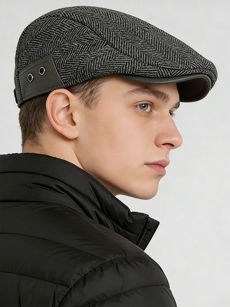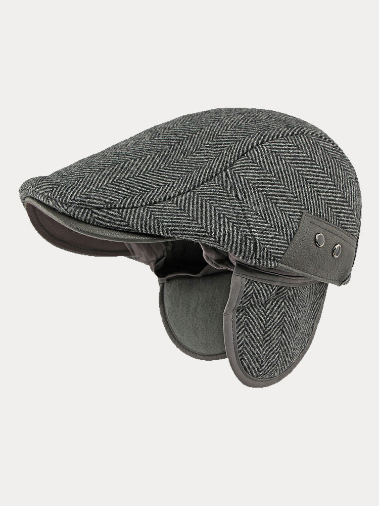 Outdoor Herringbone Ear Protection Warm Flat Cap
