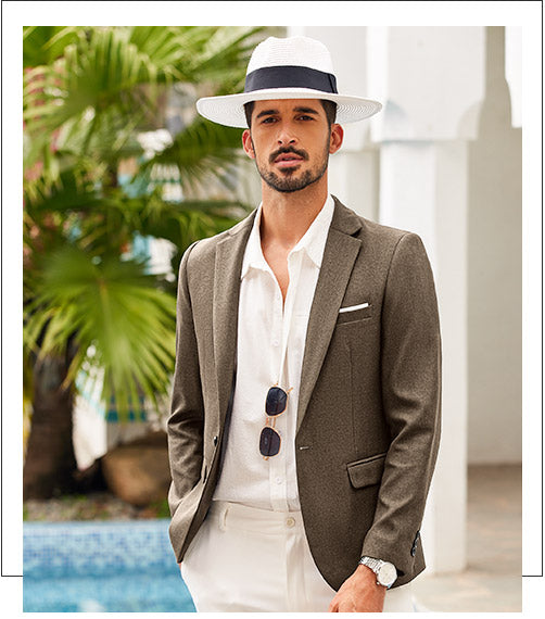 This modern suit jacket, made from 100% polyester, features a notch lapel, one-button closure, and multiple pockets. The linen texture gives you a minimalistic and elegant appearance. Style tip: Wear this jacket with a white t-shirt, casual shoes, and your favorite pants for a sharp look.