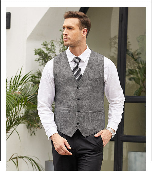 This slim-fit vest, made from 100% polyester, is soft, lightweight, and durable. It features a four-button front closure and an adjustable back strap for a perfect fit. Style tip: Layer this vest over a dress shirt and pair it with slacks or suit pants for a sophisticated ensemble.