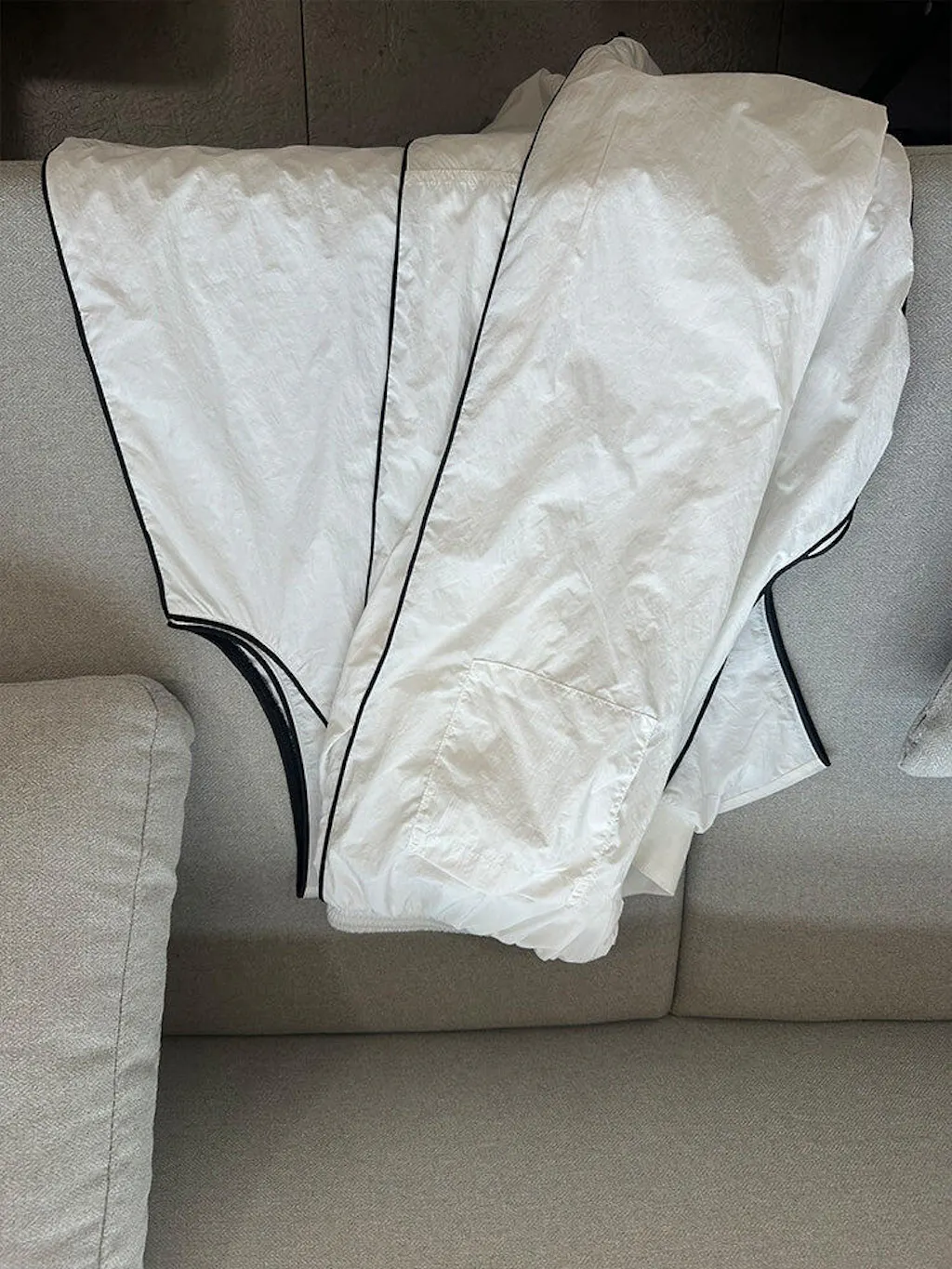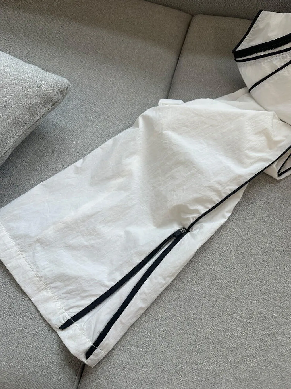 - Bottom: Elastic waist with adjustable drawstring, zipper hem, 2 slant pockets