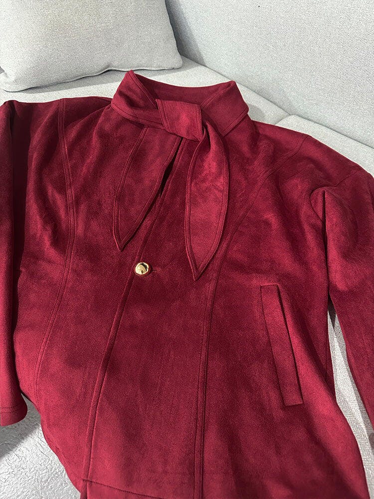 - Top: Bow tie design collar, one button closure, 2 side pockets