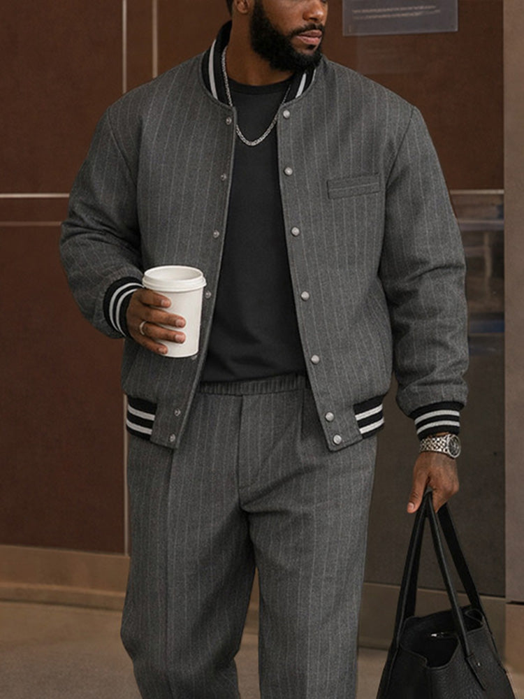 Casual Striped Bomber Jacket Pants Set