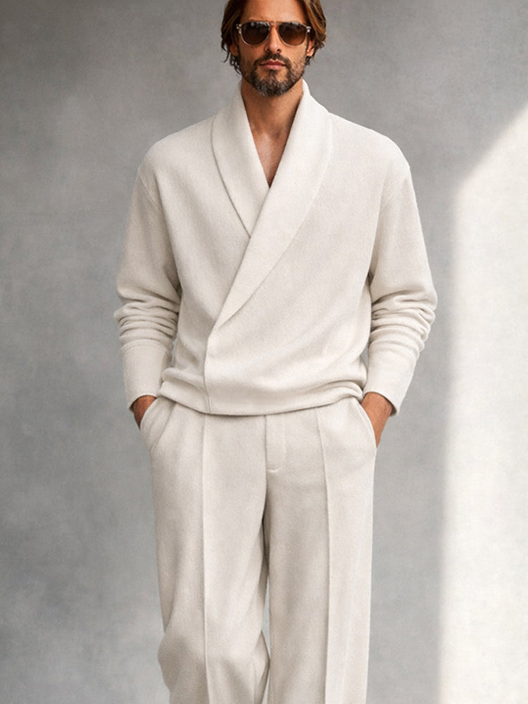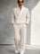 - Bottom: Straight legs, elastic waistband with internal adjustable drawstring, crease line, 2 slant pockets, one back pocket