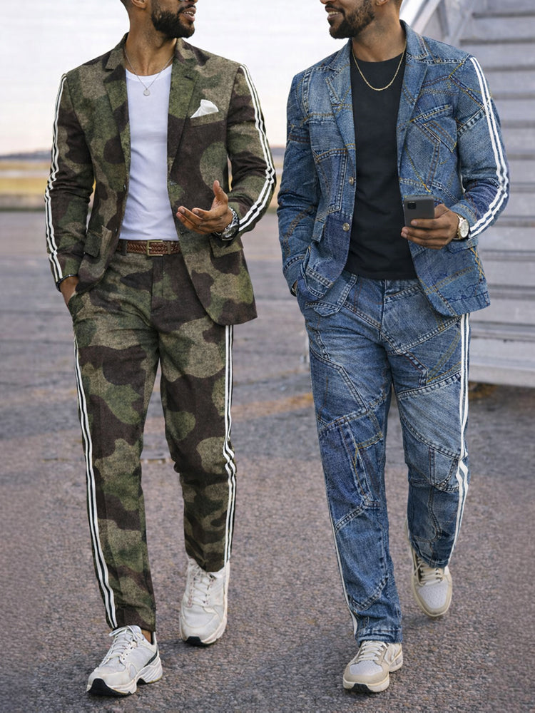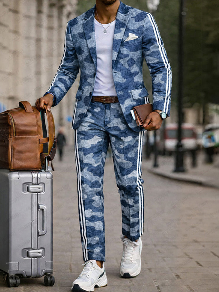 Modern Side Stripe Camo Blazer Pants Set